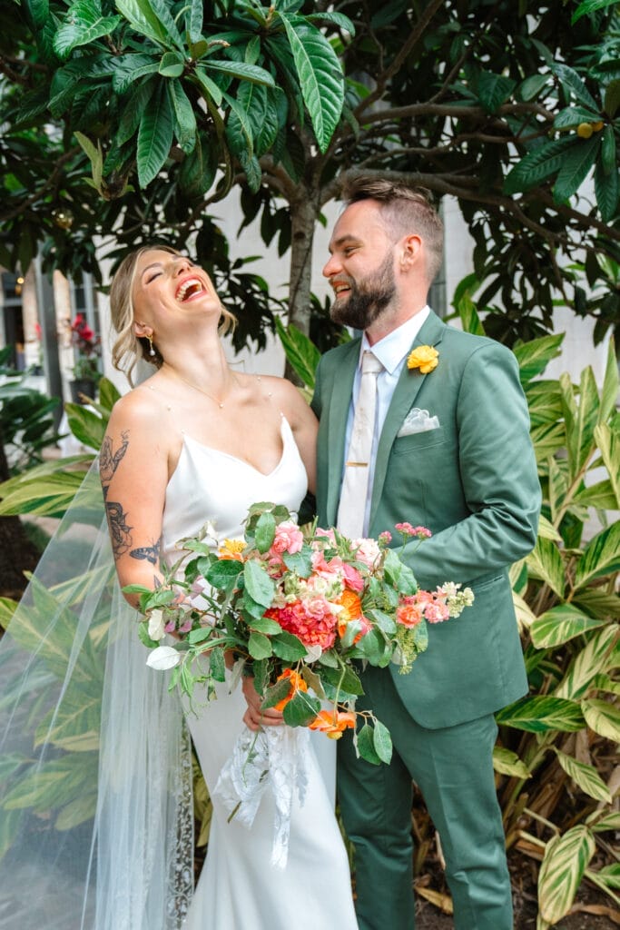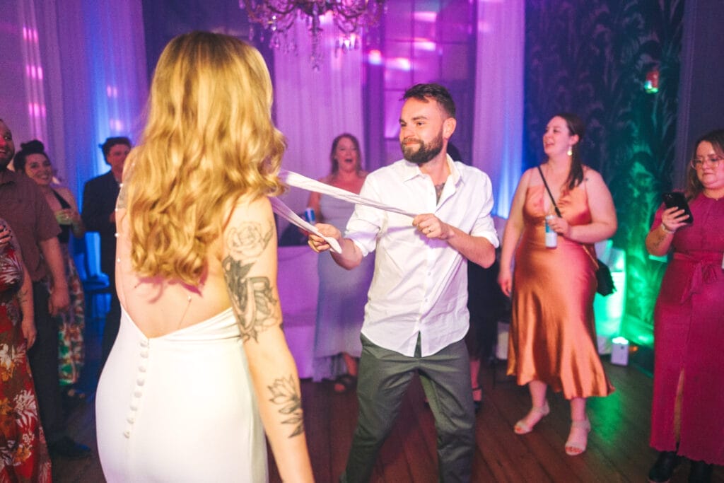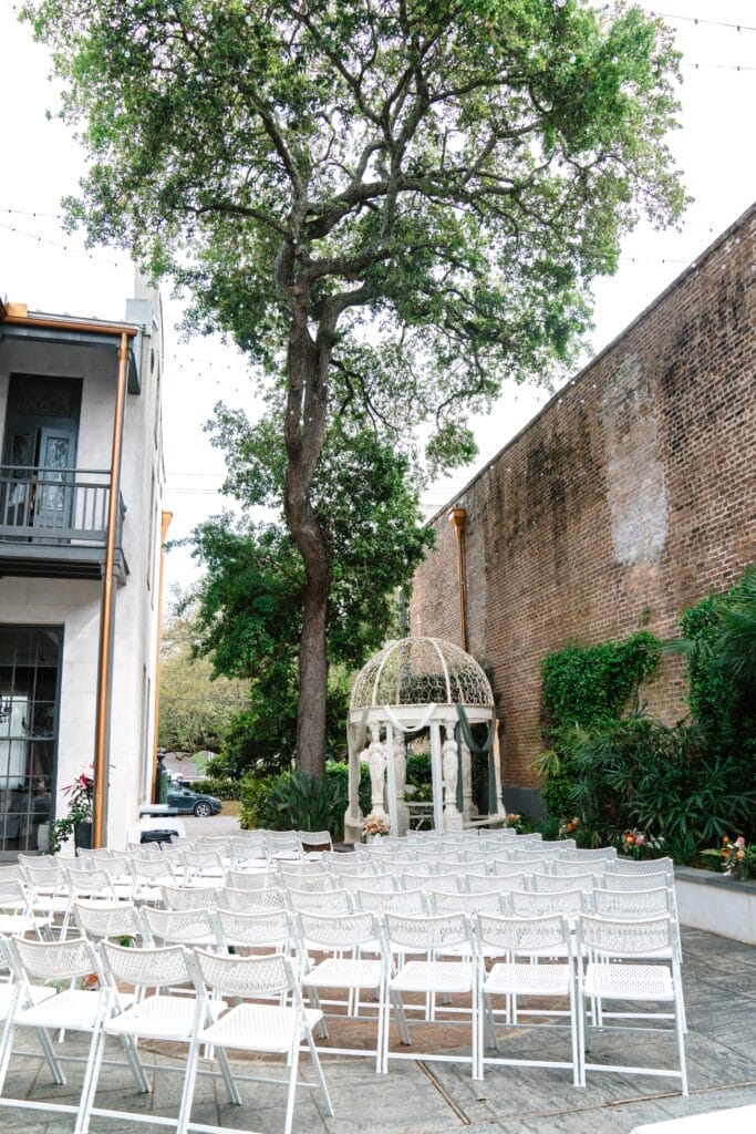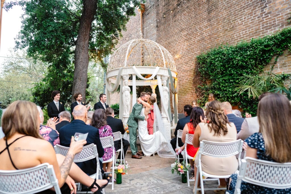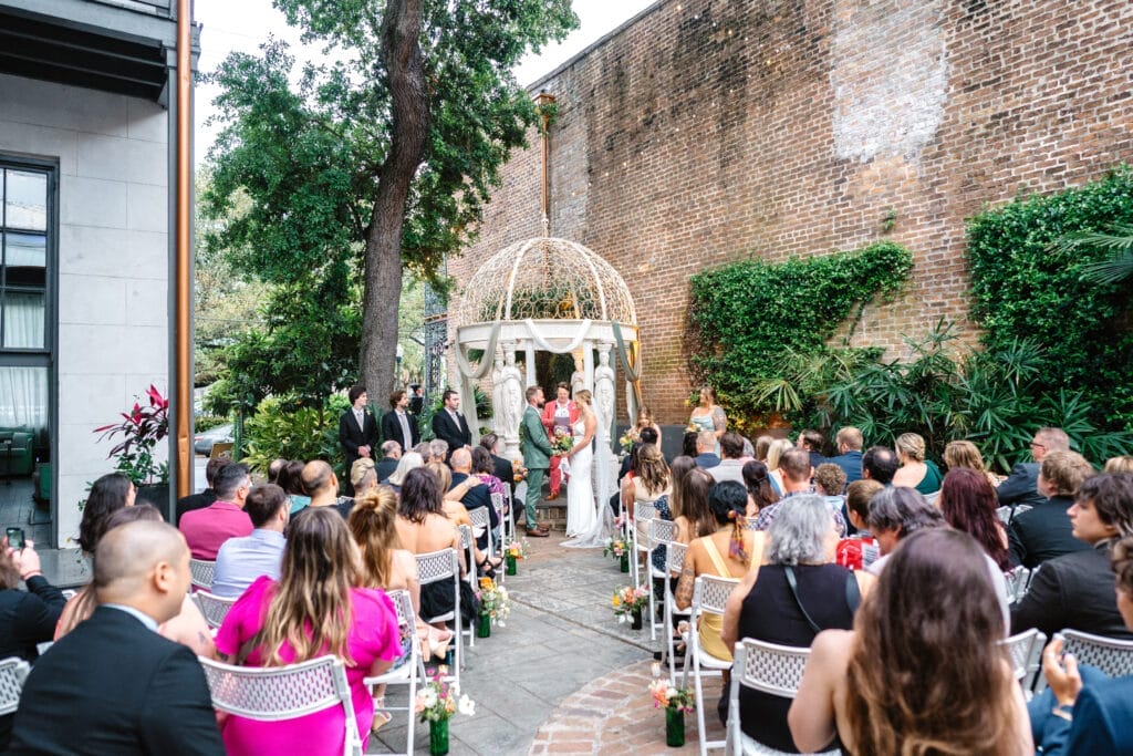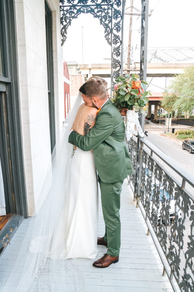 Autumn and Spencer’s April wedding was effortless, electric, and entirely their own. The courtyard ceremony beneath the gazebo set the tone—intimate yet bold—before Knockaz Brass Band took the lead, guiding the couple and their guests through the streets in a Second Line that pulsed with New Orleans energy. The party continued in the parlor, where DJ Pass the Jeffery and a masterfully designed lighting setup turned the space into something cinematic.