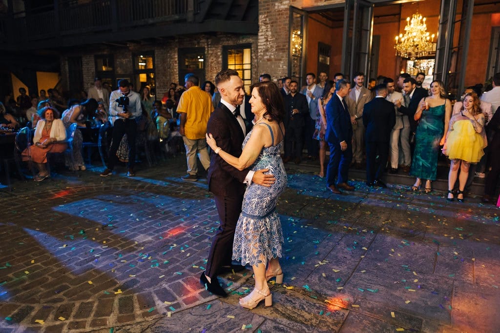 The couple planned every detail themselves, from Luna Botanical‘s lush plant-based décor to a cocktail menu that told its own story: Aperol Spritzes poured tableside before the ceremony, spicy margaritas, and frozen Irish coffees in bodega glasses. The gazebo ceremony opened with “Stargazing” and closed with Rebirth Brass Band‘s “Let’s Go Get ‘Em” — and the evening only grew from there. A grand re-entrance from the balcony to Beyoncé’s “End of Time,” a first dance that pivoted from Lauv to Garth Brooks (a nod to Ben’s Oklahoma roots), and a pedicab getaway into the Lower Garden District night. As Ben put it afterward: “It truly was the most magical day.”
